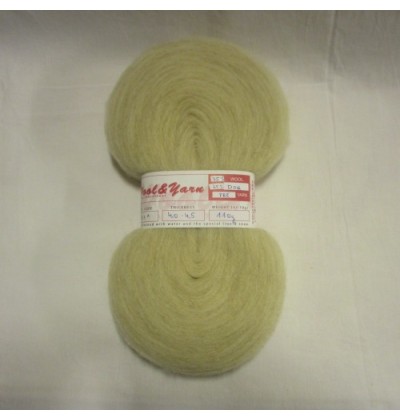 25% dog fibers and 75% sheepwool. Natural lightly creamish white Healthy...